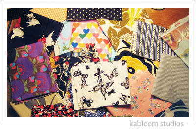 Now that I have a sewing machine, I've become "one of them." A fabric junkie. I recently ordered a "grab bag" of scraps from an online store specializing in vintage prints. This is what showed up.