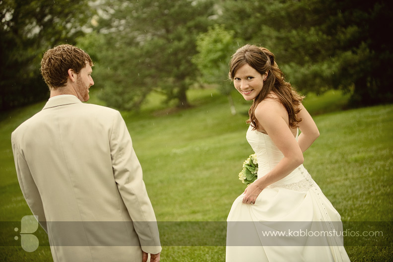 Here we head out for some portraits. (Notice that you can actually see the rain falling, and Sarah still has a smile on her face!)