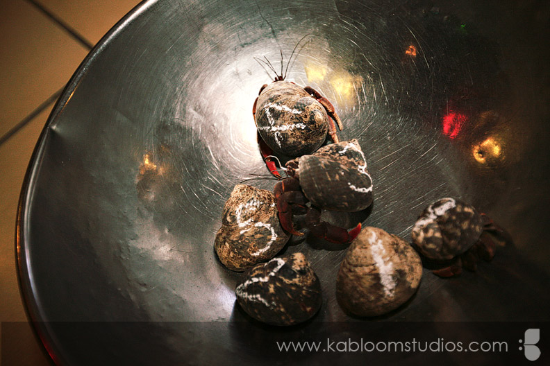 A large circle was drawn on the floor and the crabs were placed in the middle. When the bowl was lifted, the goal was to have your chosen crab be the first one to crawl outside the circle.