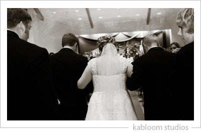 When Mandy entered the back of the room, it was touching to see two of her brothers walking her down the aisle. She got part way down, then switched to her other two brothers who escorted her the rest of the way. I love personal touches and unique expressions of love like that!