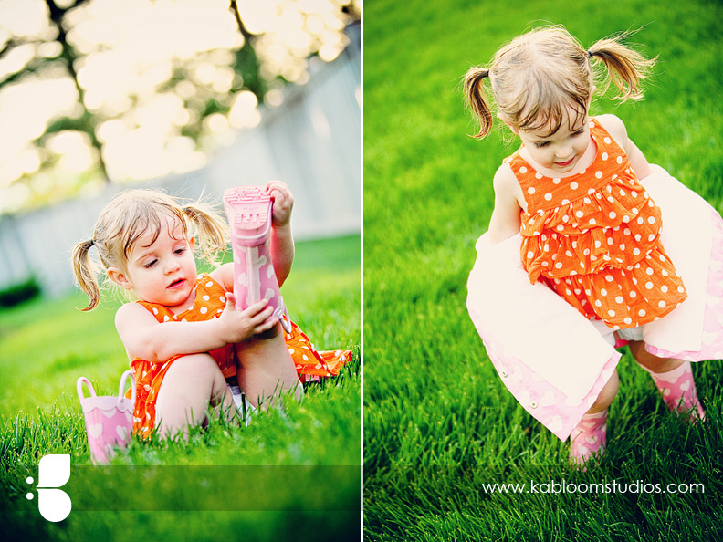 /I first met lil' Sophie when she was the flower girl in her uncle's wedding. What a thrill to be invited back to the family to create these images! Sophie's mom was a great sport and let me raid her closet where I found these rain boots and matching rain coat. Bingo!